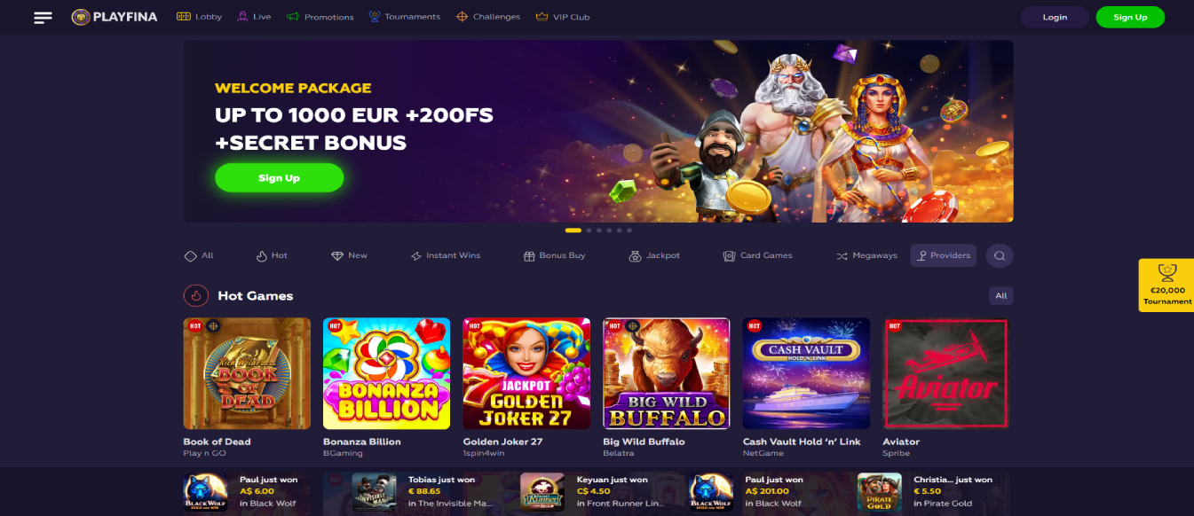 More than 11,000 slots, all varieties of blackjack, dozens of roulette games, craps, video poker, and other games are available to you at Playfina casino online Exploring Playfina - A Genuine Investment Opportunity or a World of False Hope?! Play the Best Online Casino Games at Playfina ✓ Try Slots, Blackjack, Roulette, Craps and Video Poker with Huge Bonuses. Playfina Casino How to Start Up to 1000€ + 200 FS + Secret Bonus... Playfina Casino - Bonus Codes – 50 Free Spins!